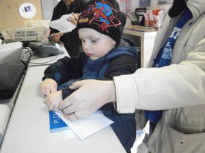 We bought stamps, and got to see where our mail goes!