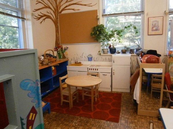 Our "art center" gets cleaned, moved about a foot, and becomes our third table for snack time!