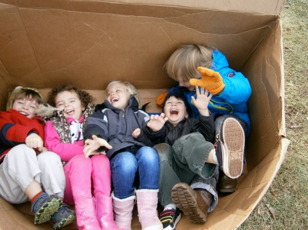 Here, the children are seeing the large box we’d brought out. Such excitement! Discussion, negotiation, compromise, brainstorming!