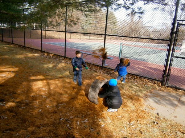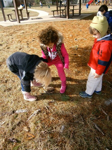 “Hey everybody, look what I found!” This child discovered a natural “step” in the trunk of the tree, and a small branch that was just the right height! (Motor planning! Oops, sorry, I won’t continue. Suffice it to say their brains were firing up!)