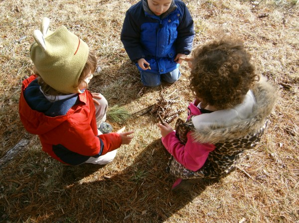 About four feet away, someone said, “Let’s make a campfire!” Pinecones, twigs and pine needles were gathered.