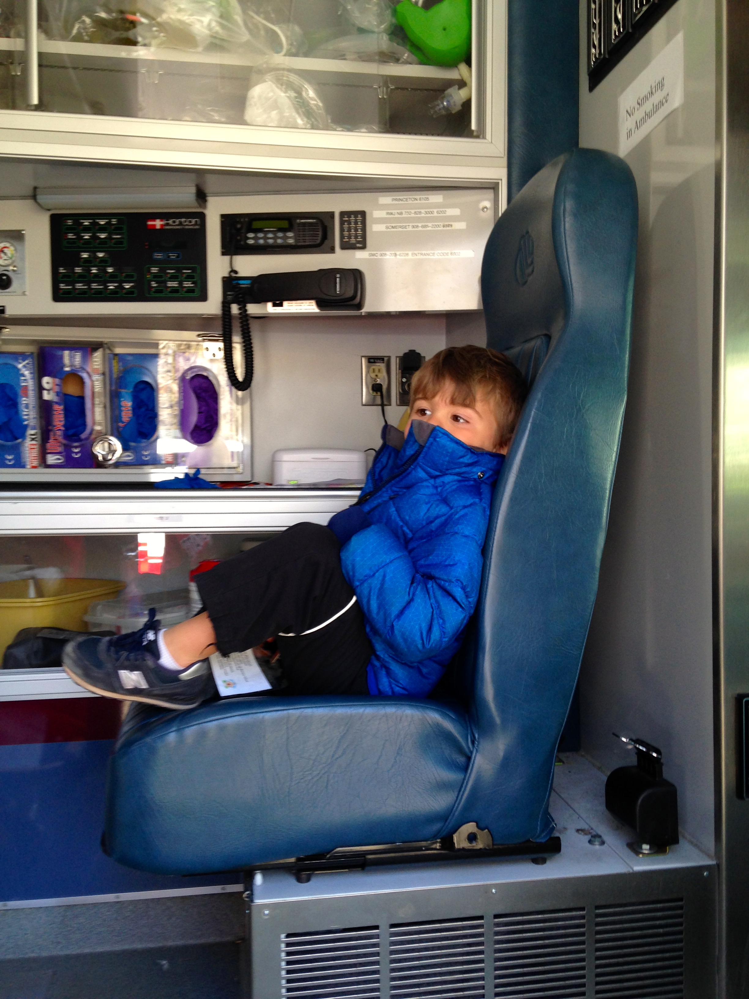 We walked through the fields to the Rocky Hill Rescue Squad and got to sit in and on an ambulance!
