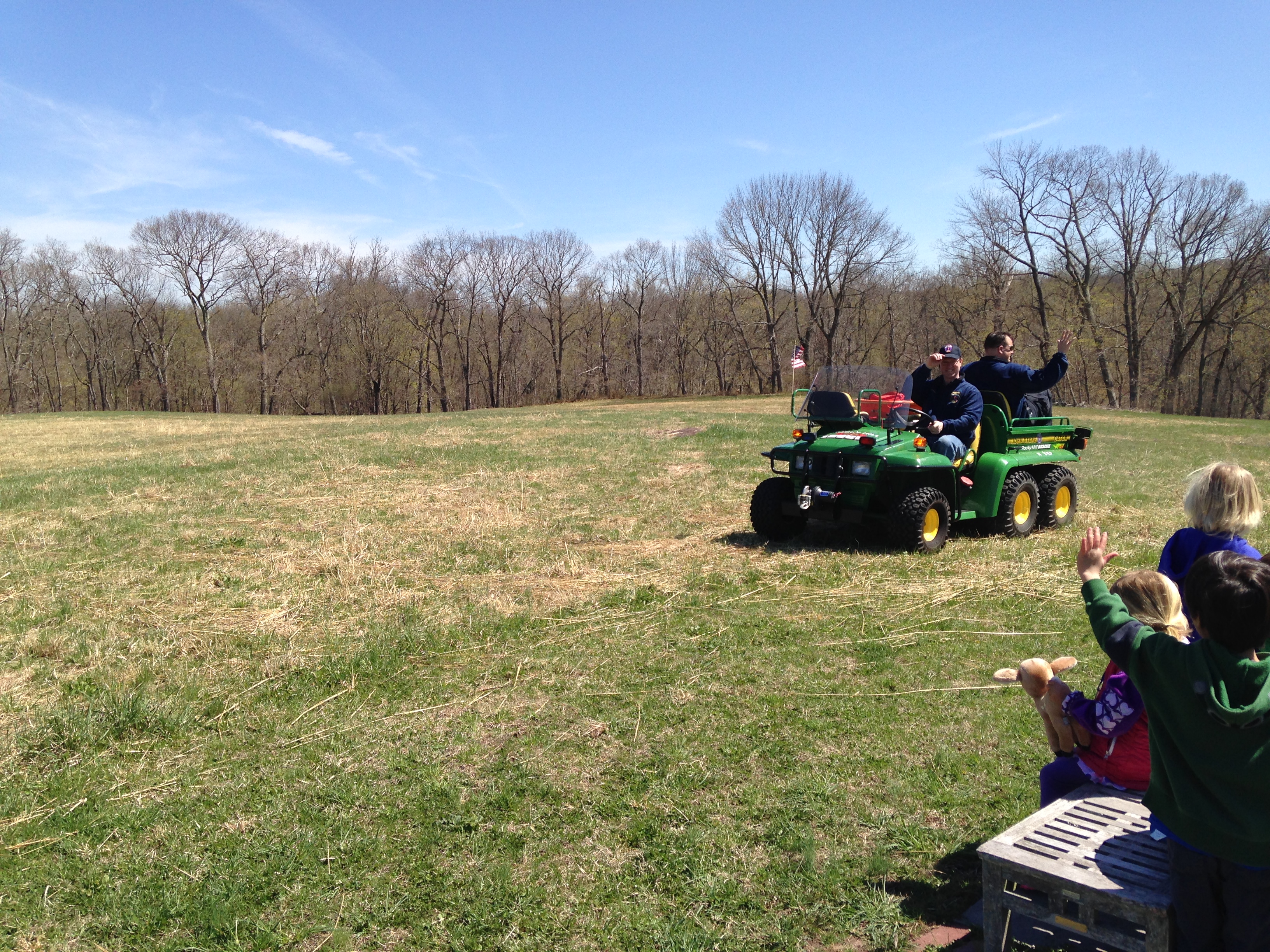 The EMTs surprised us by driving by on The Gator, the vehicle they use for off road rescue!