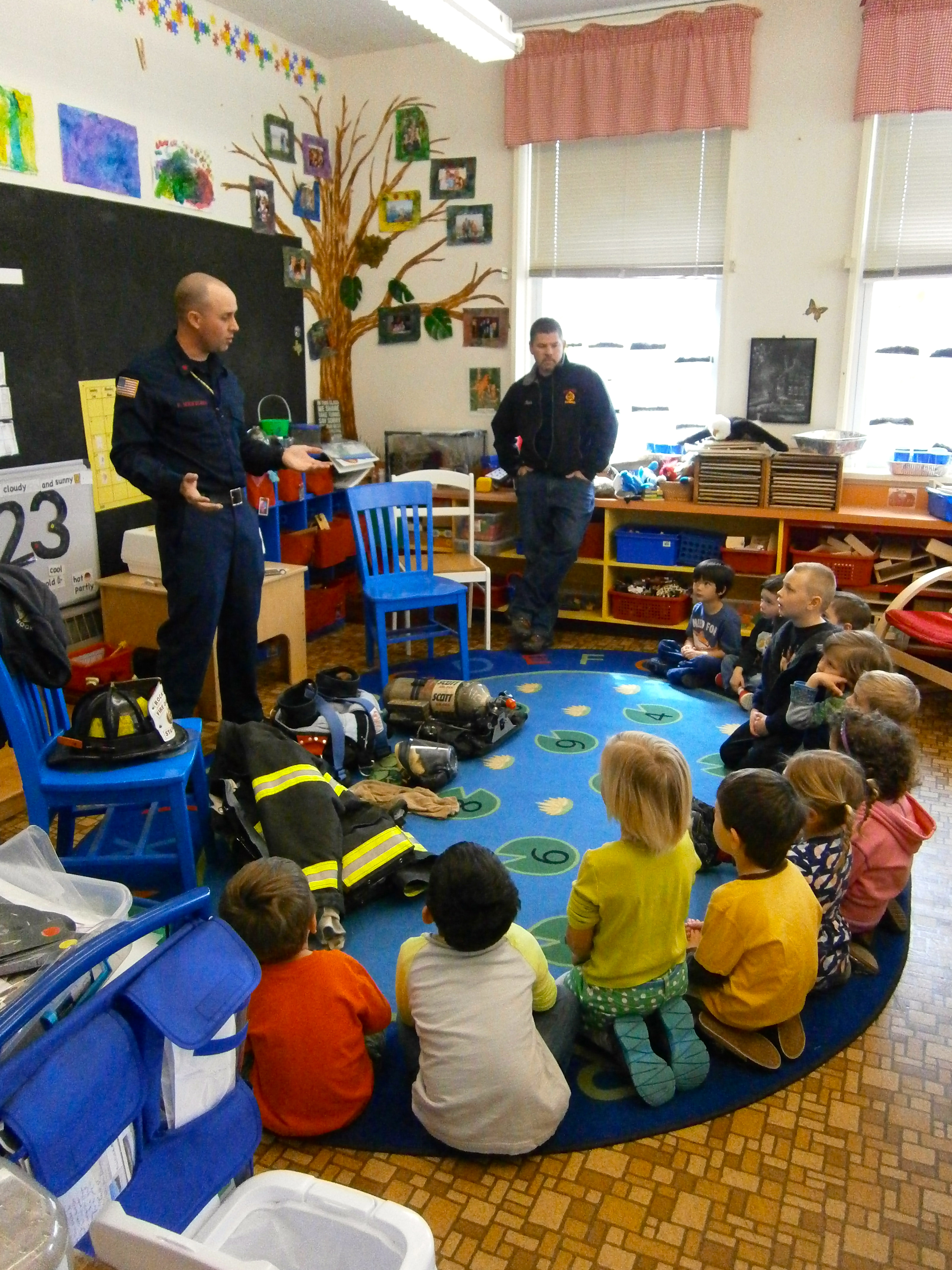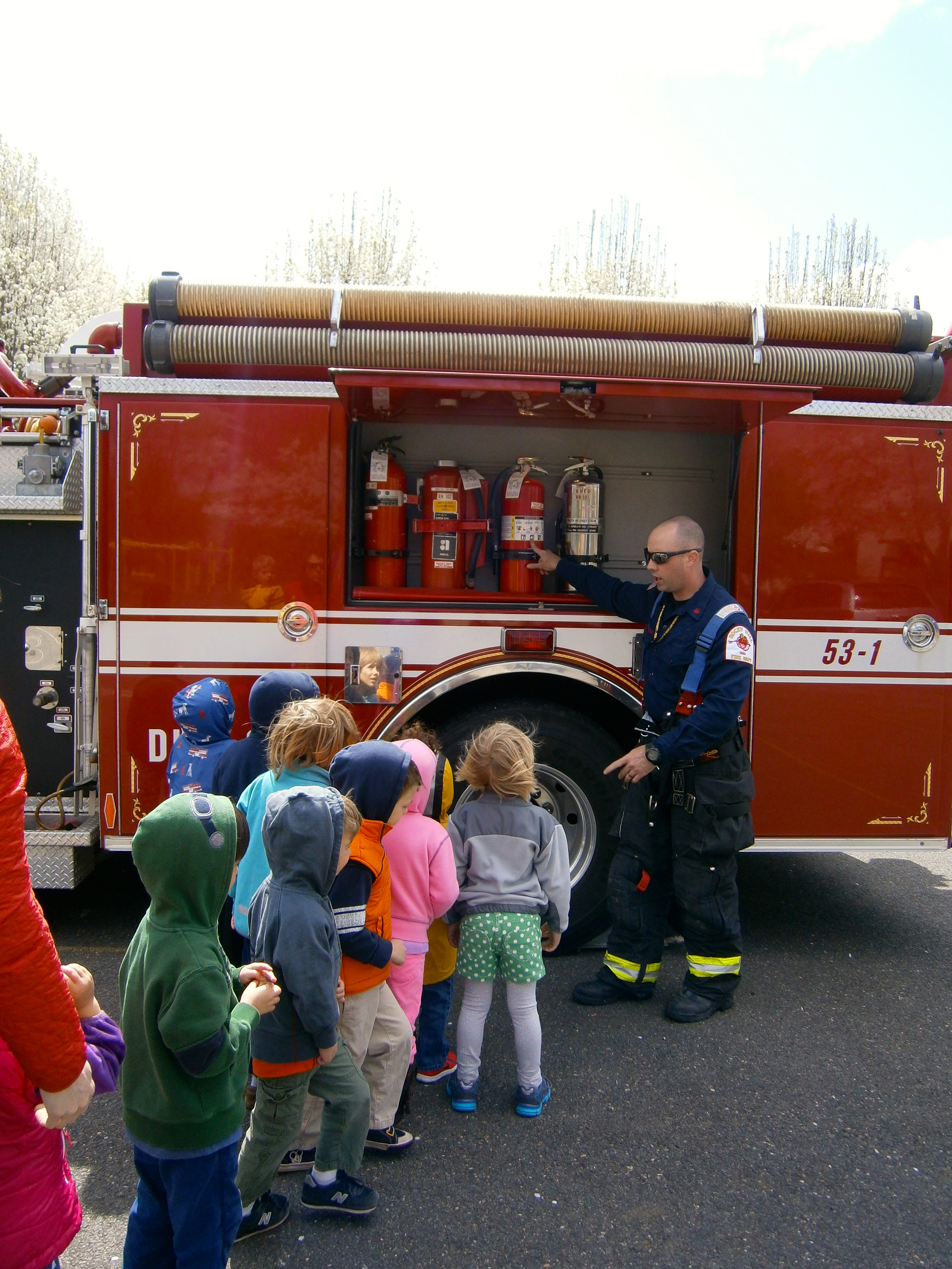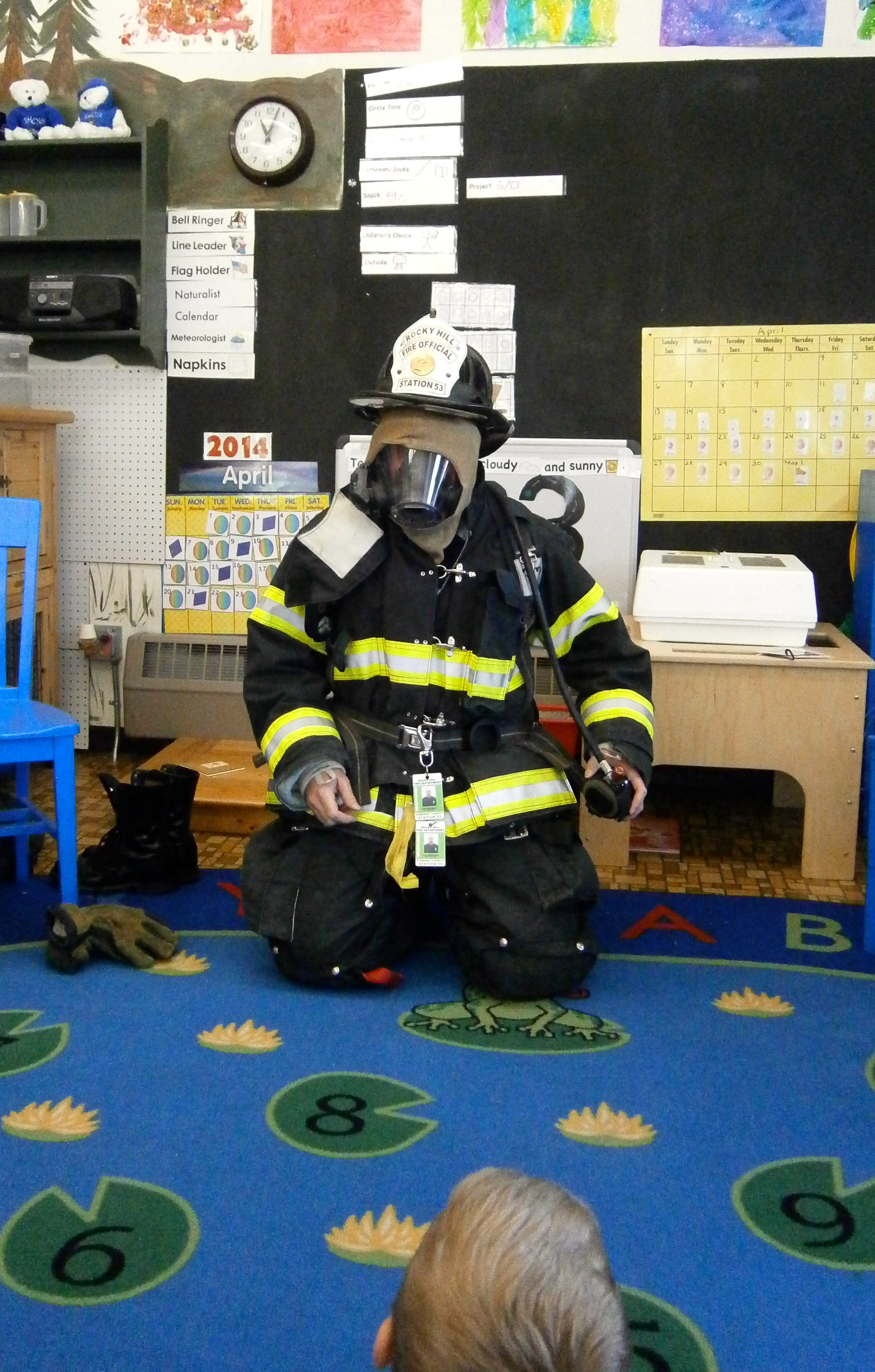 I think this is one of the most important things our firefighters do. They show us how they go from street clothes to their full gear. Children can practice crawling to them and touching their gloves. Think about. In case of fire, would children typically crawl towards someone who looks and sounds like Darth Vadar? Hopefully, now they will!