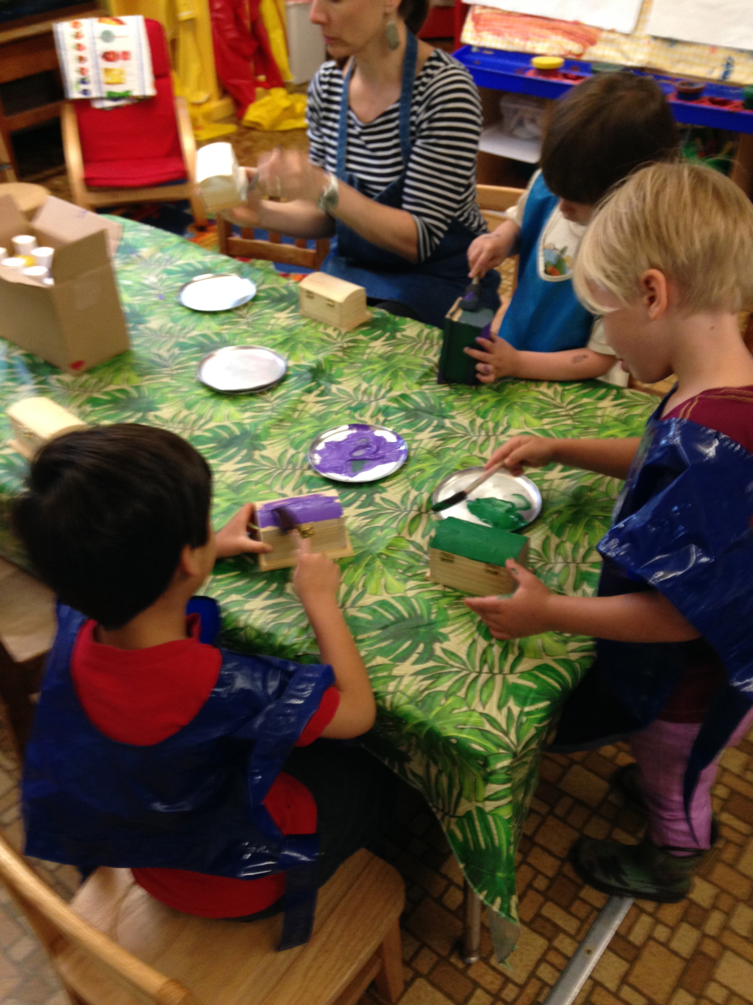 What a fun day!  I’ll admit, my voice was a bit rough from all the avasting and yohoing today!    We started off the day with wooden treasure chests  to paint, newspapers to make hats, and sparkly pipe cleaners for those who prefer more sparkle to their headwear!