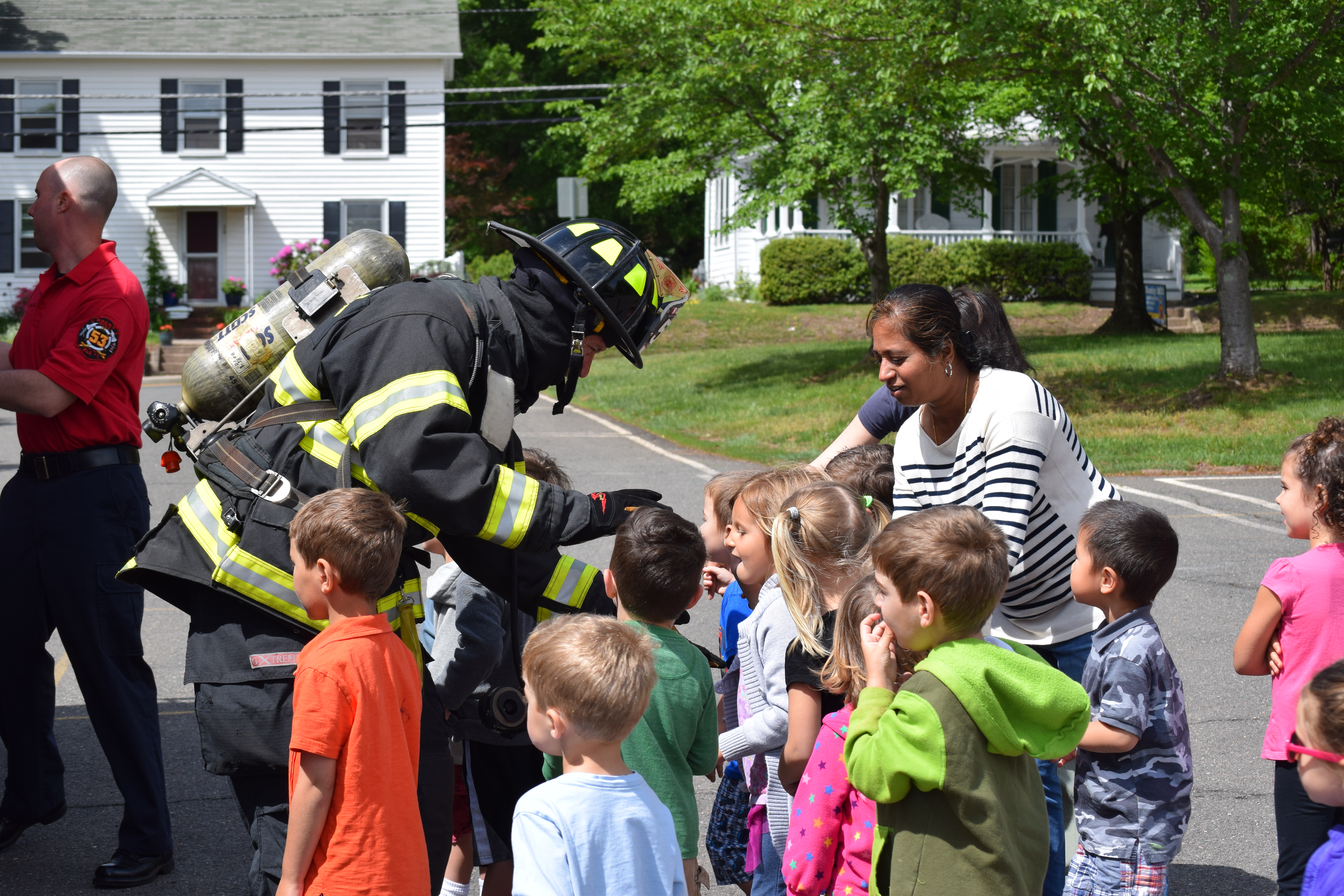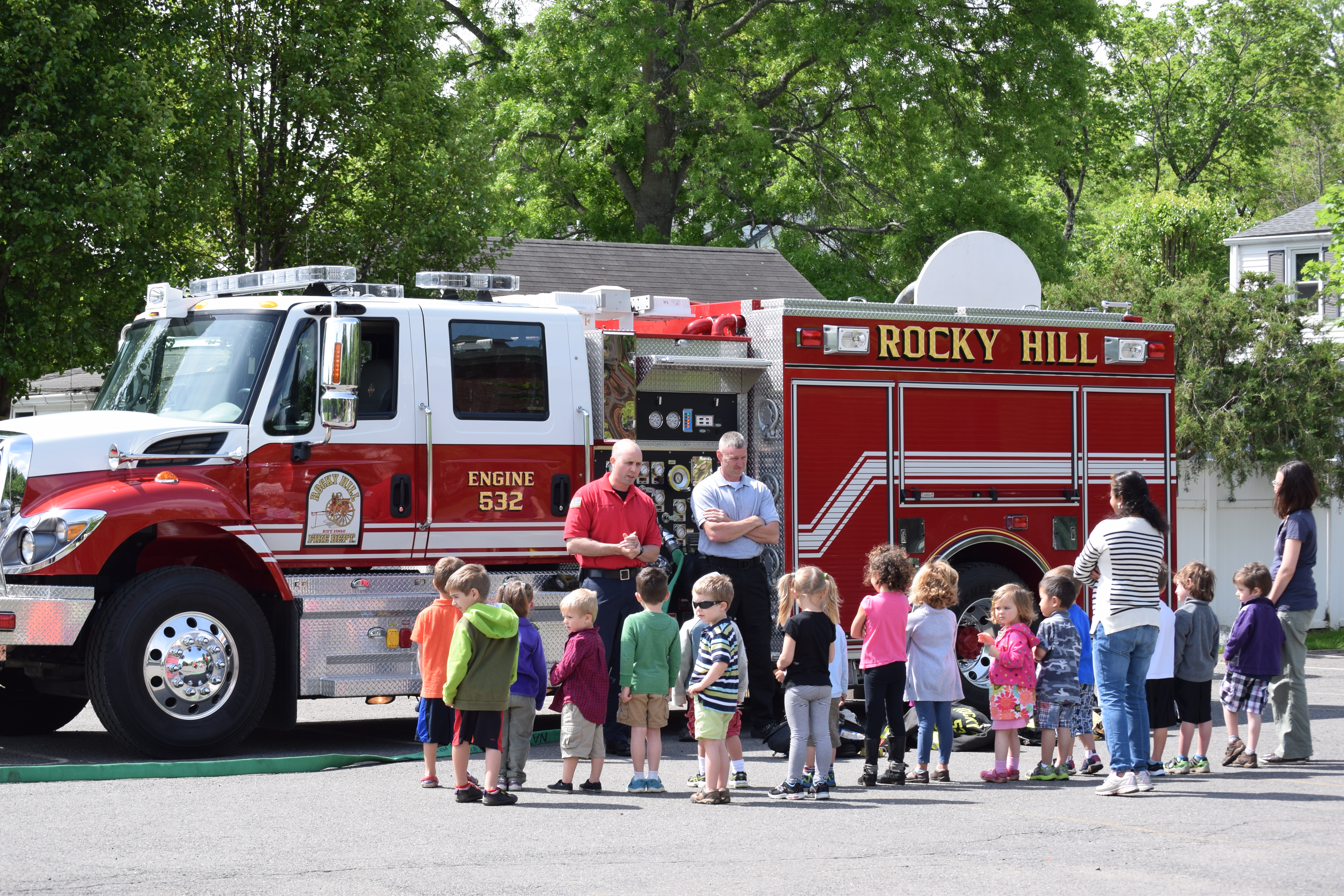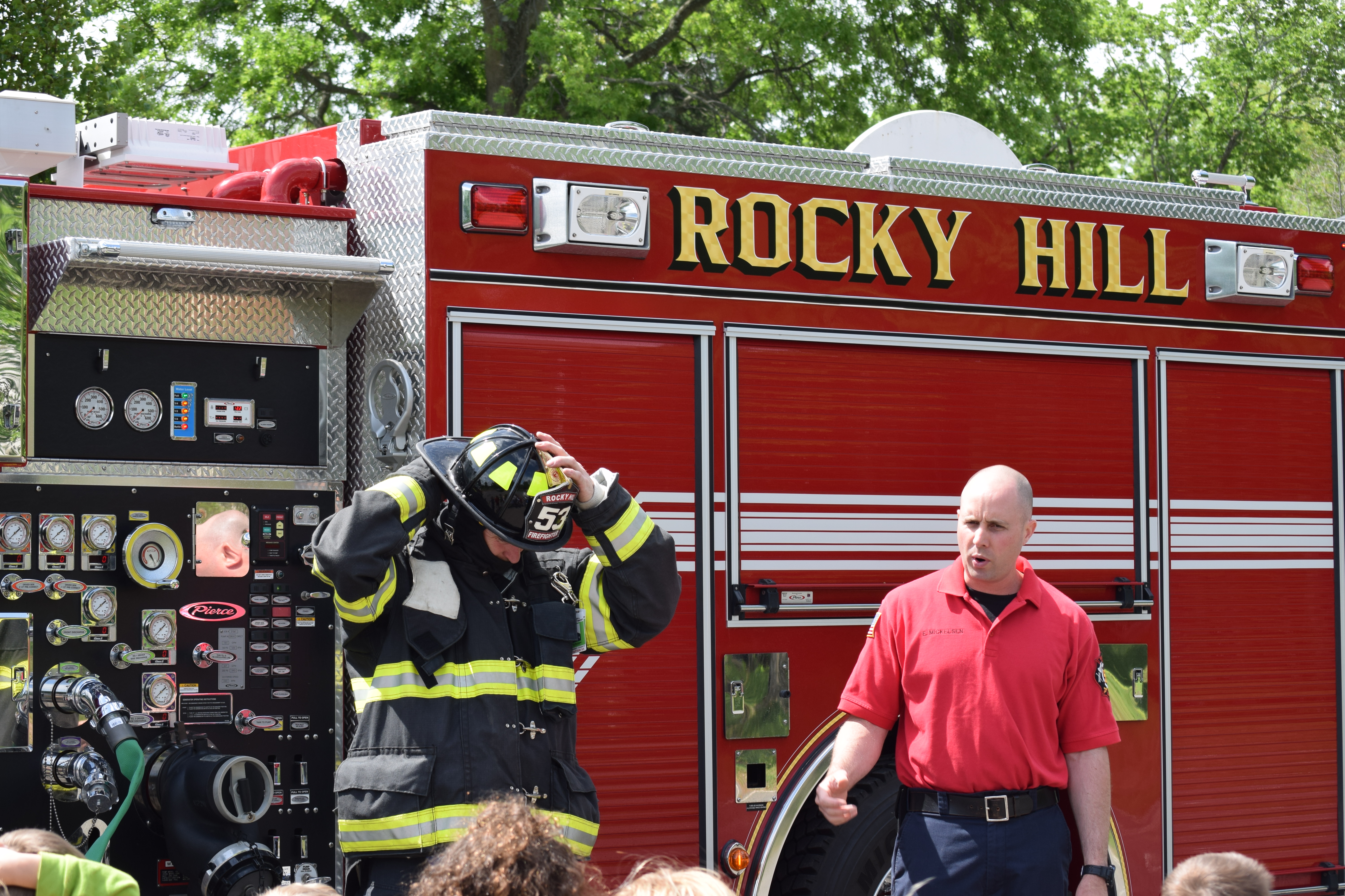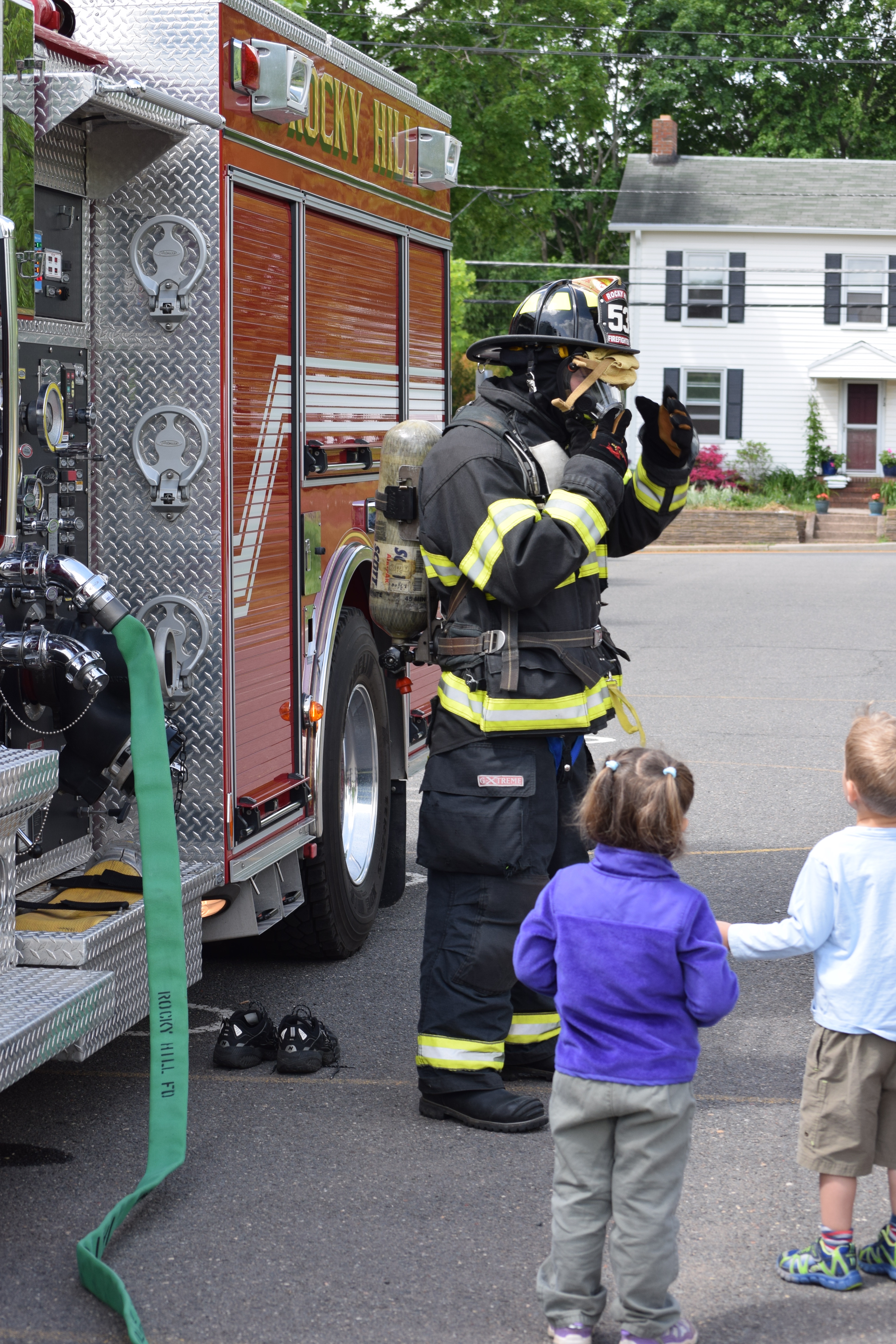 Our wonderful Rocky Hill firefighters come every year to show us how they put on their gear, the highlights of their truck, and how to shoot water out of the hose!